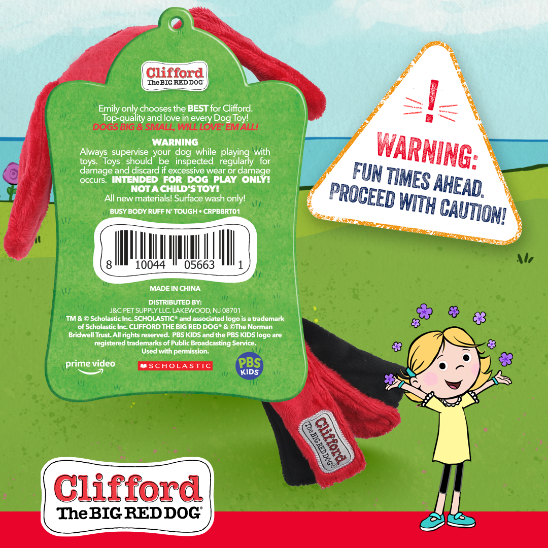 Get ready for endless playtime fun with your furry best friend! Clifford The Big Red Dog Busy Body Ruff n’ Tough Plush Dog Toy is packed with a squeaker, crazy crinkle tassels, and ears to keep your pup entertained for hours. It’s perfect for tugging, tossing, and all-around play. Made with a combination of soft, plushy materials and tough TPR, this toy is built to last and provide cozy yet exciting playtime. So go ahead, let your pup unleash their inner Clifford the Big Red Dog with this toy.